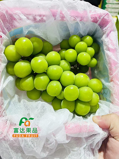 成熟采摘,顆粒無限飽滿,果肉帶著淡淡的花香,甜度也是杠杠的,純正陽光玫瑰的味道。